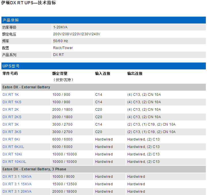 伊頓DX RT UPS可為關鍵服務器和網絡傳輸設備、IT機柜、電信通訊、VoIP等設備、銀行及安全系統、醫療系統、制造/控制系統、實驗室設備、精密儀器儀表等提供安全可靠的電力保護。Eaton DX RT的輸出功率因數高達0.9,可提供更強大的帶載能力, 與目前已普遍使用了輸入功率因數校正電路的現代型計算機設備相匹配,且輸入諧波小,綠色環保